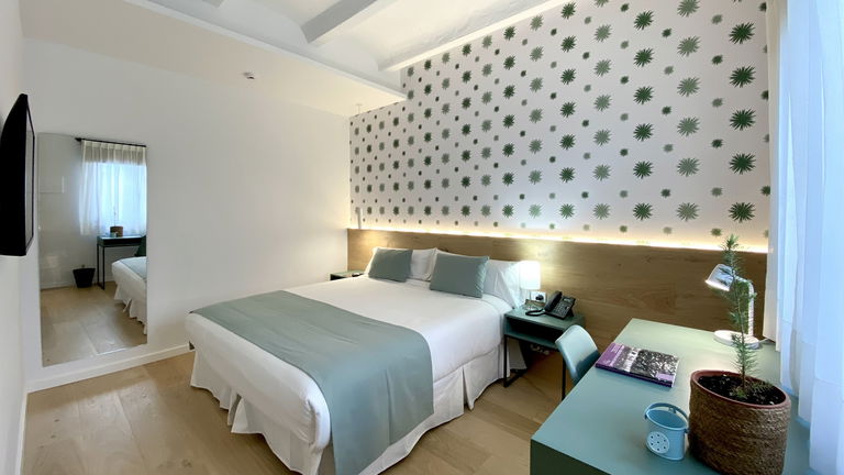 Hot and cold air conditioning / Smart TV with connectivity to your phone and multiple channel and movie options / Bathroom equipped with hairdryer and large double shower with courtesy gel and shampoo / Acoustic insulation, direct and indirect lighting, opaque and translucent curtains / Telephone to contact reception and safe with capacity for a laptop / Pillow menu with 4 options, service on request / Welcome gift that includes 1 bottle of water, various infusions and coffee capsules, a notebook and pencil to write down your ideas , your tasks or your memories…/ Singular trees catalog / Small tree to be cared for with its watering can and later planted in a reforestation area.